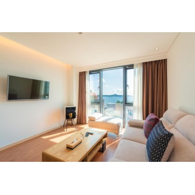 Comfortable Accommodations: Hotel Fine Jeju in Seogwipo offers family rooms with air-conditioning, private bathrooms, and modern amenities. Guests enjoy sea, lake, or mountain views from balconies or terraces.