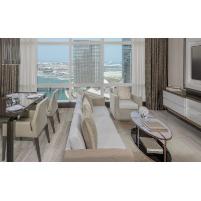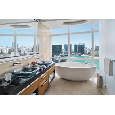 Located on Al Maryah Island in the heart of Abu Dhabi's new International Financial Center, the Rosewood Abu Dhabi offers direct access to the Cleveland Clinic Abu Dhabi and the luxurious Galleria shopping mall. Offering 148 rooms and 41 suites, all accommodations boast stunning views of the Arabian Gulf and the Abu Dhabi skyline. All rooms are non-smoking and feature an iPad® in-room navigation system, a media center with a 55-inch flat-screen TV, an oversized Villeroy & Boch bathtub, and Pratesi Egyptian cotton linens. Guests can enjoy the outdoor pool after a workout in the fitness center. The hotel's wellness and fitness club is equipped with state-of-the-art facilities, offering a wide range of cardiovascular and strength training equipment. The hotel's Sense® Spa offers a variety of soothing therapies, treatments, and services. The Rosewood Abu Dhabi's eight restaurants and lounges provide guests with unique dining experiences. Guests can enjoy authentic global cuisine and sample cigars or wines at La Cava restaurant, or refreshing drinks at the Glo or Hidden Bar. Rosewood Abu Dhabi is adjacent to Abu Dhabi's upscale shopping destination, The Galleria Mall, and the prestigious Sowwah Square commercial district, offering convenient access to a wide range of luxury brands. The hotel is a 15-minute drive from Saadiyat Island and a 25-minute drive from Abu Dhabi International Airport.