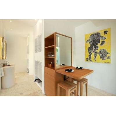 Boasting contemporary artwork and design, Uma Sapna Seminyak is located in Bali’s Seminyak Village, a 15-minute walk from Seminyak Square. It features a swimming pool, a spa, and luxurious villas with free Wi-Fi. Parking is free. Uma Sapna Seminyak is a 10-minute drive from Petitenget Beach and Ku De Ta Restaurant. Ngurah Rai International Airport is 10 km from the property. Featuring cable TV and iPod docking stations, the spacious villas at Sapna Uma are furnished with wall paintings and modern décor. Each villa has a living room and bathrooms with bathtubs. Bathrobes and slippers are also provided. The spa offers massages, manicures and pedicures, and yoga sessions. Travel services include tour bookings and car rentals. The property also houses Kendra Gallery, which showcases modern local art. Meals are served in the comfort of guests’ villas. The menu includes a variety of local and international dishes.