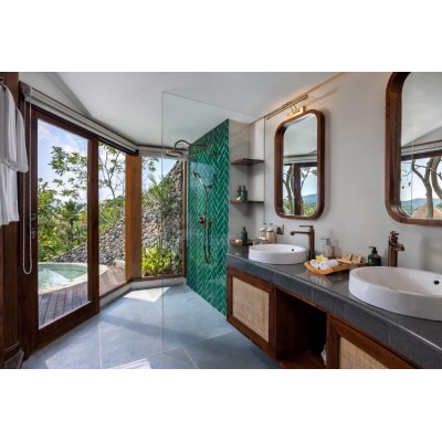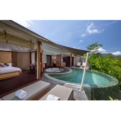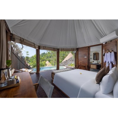 Elegant Accommodation: The Wapa Lux Tent in Sidemen offers a 5-star hotel experience with spa facilities, a sun terrace, and a lush garden. Guests enjoy a year-round outdoor swimming pool, free WiFi, and a fitness room.Dining and Leisure: The family-friendly restaurant serves Indonesian and international cuisines with halal, vegetarian, gluten-free, and dairy-free options. Additional amenities include a bar, yoga classes, and cycling.Convenient Location: Located 54 km from Ngurah Rai International Airport, the hotel is near attractions such as Goa Gajah (31 km) and Tegenungan Waterfall (33 km). Free on-site parking and a tour desk enhance the stay.
