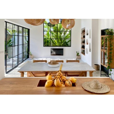 Elegant Accommodation: The Young Villas - Canggu in Canggu offers a villa with a sun terrace, garden, outdoor swimming pool, and free WiFi. Guests enjoy air-conditioning, private bathrooms, and modern amenities.Comfortable Facilities: The property features a hot tub, outdoor dining area, and free on-site private parking. Additional services include housekeeping, car hire, luggage storage, and full-day security.Prime Location: Located 16 km from Ngurah Rai International Airport, the villa is near Batu Bolong Beach (2.9 km) and Tanah Lot Temple (10 km). Surfing is available in the surroundings. Highly rated for bike/bicycle, room cleanliness, and garden.
