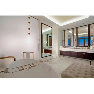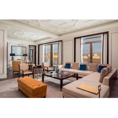 The St. Regis Astana is located on the banks of the Ishim River in the heart of Central Park in Kazakhstan's capital. Bayterek Tower, Independence Square and Astana Opera are a 15-minute drive away. The hotel's interior design combines modern features with references to Kazakhs’ nomadic history. A flat-screen TV with cable channels, as well as an iPod docking station are offered. All rooms have a separate living room and a signature St. Regis Bed. A private bathroom with a bath and bidet, with bathrobes, slippers and free toiletries are provided. Superior rooms include a sauna or a spa bath. Iridium Spa offers a range of different beauty and wellness treatments. Swimming pool and fitness centre as well as a sauna are offered to guests on site at St. Regis Athletic Club. There is also a conference hall at the property and a 24-hour concierge service as well as complimetrary butler service are available to guests of the St. Regis Astana. The hotel also offers car hire. Expo 2017 Exhibition Complex is 8 km from the St. Regis. The nearest airport is Astana International Airport, 17 km from The St. Regis Astana.