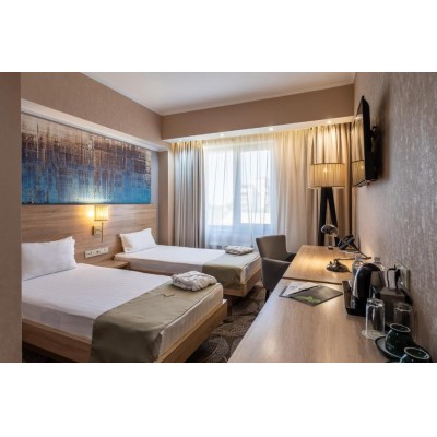 Comfortable Accommodations: Renion Park Hotel in Almaty offers family rooms with air-conditioning, private bathrooms, and city views. Each room includes a work desk, minibar, and free WiFi.Exceptional Facilities: Guests can enjoy a spa and wellness centre, sauna, fitness centre, indoor swimming pool, and steam room. Additional amenities include a lounge, coffee shop, and hairdresser.Dining Experience: The family-friendly restaurant serves Asian and European cuisines in a traditional, modern, and romantic ambience. Breakfast is continental, and room service is available.Prime Location: Located 14 km from Almaty International Airport, the hotel is near attractions such as Ascension Cathedral (6-minute walk) and Almaty Central Mosque (13-minute walk). Free on-site private parking is provided.
