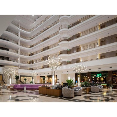 Elegant Accommodation: Mövenpick Samarkand in Samarkand offers a 5-star experience with modern rooms featuring air-conditioning, private bathrooms, and free WiFi. Each room includes a minibar, TV, and wardrobe, ensuring comfort and convenience.Exceptional Facilities: Guests can enjoy a sauna, fitness centre, seasonal outdoor and indoor swimming pools, and a hammam. Additional amenities include a terrace, garden, and free on-site private parking. The hotel provides a 24-hour front desk, pool bar, and outdoor seating area.Dining Experience: The modern restaurant serves lunch, dinner, and high tea with local specialities, warm dishes, fresh pastries, and a variety of beverages. A buffet breakfast is available, featuring local specialities, warm dishes, juice, fresh pastries, pancakes, cheese, and fruits.Convenient Location: Located 7 km from Samarkand International Airport, the hotel offers a paid shuttle service and free WiFi in public areas. Nearby attractions include Registan Square and Bibi Khanum Mosque, providing easy access to local highlights.