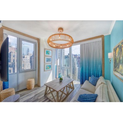 Prime City Location: Margaritaville Resort Times Square in New York City offers a central position with Bryant Park a 6-minute walk away and Times Square 400 metres nearby. LaGuardia Airport is 12 km from the property.Exceptional Facilities: Guests enjoy a rooftop swimming pool, fitness centre, terrace, restaurant, bar, and free WiFi in public areas. Additional amenities include an outdoor fireplace, fitness room, and 24-hour front desk.Comfortable Accommodations: Rooms feature air-conditioning, bathrobes, streaming services, tea and coffee makers, and city views. Additional amenities include soundproofing, parquet floors, and interconnected rooms.Dining Experience: The on-site restaurant serves American cuisine, offering continental and American breakfast options. Live music and a coffee shop enhance the dining experience.
