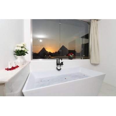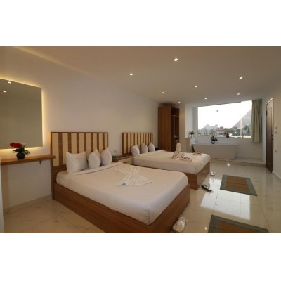 Located in Cairo, a 6-minute walk from the Sphinx, West Pyramids Hotel features a terrace, free private parking, a restaurant, and a bar. This 3-star hotel offers an ATM and concierge service. The property provides a 24-hour front desk, airport transfers, room service, and free WiFi. The hotel offers air-conditioned rooms with a desk, electric kettle, refrigerator, microwave, safe, flat-screen TV, and a private bathroom with a bidet. Bed linen and towels are provided in the rooms at West Pyramids Hotel. Guests can enjoy a buffet, à la carte, or continental breakfast at the property. The Giza Pyramids are a 17-minute walk from the accommodation, while The Grand Egyptian Museum is 6 km away. Cairo International Airport is 31 km from the property.