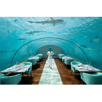 Set on 2 separate islands connected by a bridge, the luxurious Conrad Maldives Rangali Island offers spacious private villas. It boasts the all-glass underwater Ithaa Restaurant and 2 award-winning spas. Stretching up to 500 metres into the Indian Ocean, Conrad Rangali Island's villas are packed full of creature comforts, including free Wi-Fi, flat-screen TVs and DVD players. Beautiful sea or beach views are framed through wooden floor-to-ceiling windows. Total relaxation can be enjoyed at the lagoon Spa Retreat and Over-Water Spa. Guests may make their stays extra rewarding by visiting the on-site Italian boutique, or learning about local culture on a day trip to one of the surrounding islands. Conrad Maldives' 12 world-class restaurants and bars serve an assortment of international, Mediterranean and grilled dishes. Over 600 bottles of premium wine can be enjoyed at The Wine Cellar. We are a twin-island experience resort. Our family island, Rangali-Finolhu welcomes children of all ages. Our secluded adults' island, Rangali island does not permit children below the age of 16 to stay in water villas and the Quiet Zone pool located on this island. With the exception of the 2 Bedroom Rangali Ocean Pavilion with Pool that accommodates up to a family of six including children. Conrad Maldives Rangali Island is reachable via a 30-minute scenic seaplane transfer from Male International Airport.