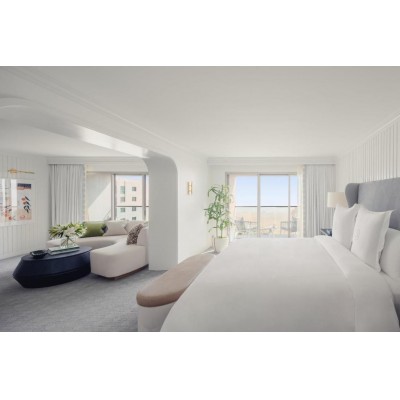 The contemporary guest rooms at Regent Santa Monica Beach Hotel are furnished with a flat-screen TV and carpeted floors. Guests can relax on the small step-out balcony with a drink from the minibar. Room service is available 7 days a week.