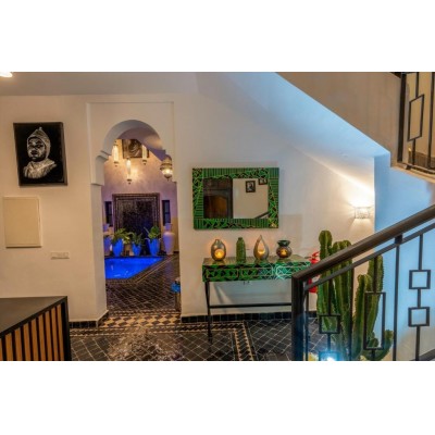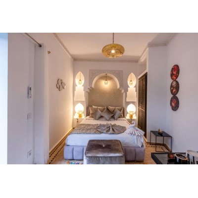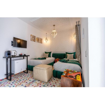 Riad Sahelia enjoys a prime location in Marrakech, offering air-conditioned rooms, a terrace, and free WiFi. The property is within easy reach of several attractions, including the Koutoubia Mosque, the Marrakech Oriental Museum, and Le Jardin Secret. Guests can enjoy the indoor pool or pool views. Each room at this traditional Moroccan courtyard home features a wardrobe, a flat-screen TV, a private bathroom, bedding, and towels. Some rooms at Riad Sahelia offer a patio. Rooms include a coffee machine. All rooms have a safe. Breakfast is served, with options for continental, halal, and gluten-free options. Popular landmarks near the property include Djemaa el-Fna, Bahia Palace, and the Carpet Museum. Marrakech Menera Airport is 6 km from the property.
