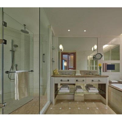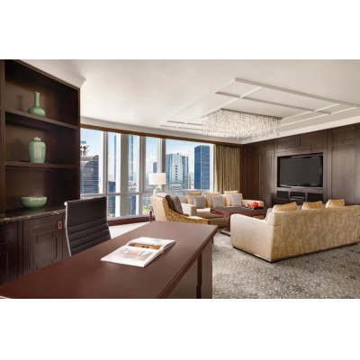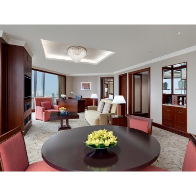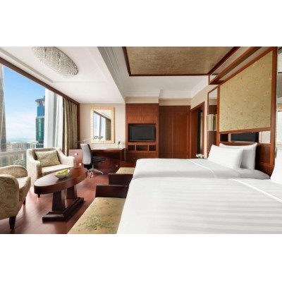 The Shangri-La Hotel, Futian, Shenzhen boasts a prime location in the heart of Futian District's business district. This 40-story building is a landmark in Shenzhen. The hotel offers free WiFi, an indoor heated swimming pool, three restaurants, and a lobby lounge, all within walking distance of the Shenzhen Convention and Exhibition Center and the Shenzhen Civic Center. The subway station is a 2-minute walk away. The hotel is a 5-minute walk from Futian Railway Station and a 14-minute high-speed train ride from Hong Kong West Kowloon Station. Shenzhen Bao'an International Airport is a 30-minute drive away. Luohu Railway Station and Shekou Passenger Terminal are a 15-minute drive away. Spacious guest rooms feature large windows offering views of the park or city skyline and include a 35-inch LCD TV, CD and DVD player. Each apartment also features a comfortable armchair, walk-in closet, and modern artwork. The spacious marble bathroom includes a bathtub and a 15-inch LCD TV. Guests can relax on the outdoor tennis court. The Shangri-La's CHI Spa offers private spaces and soothing massages by skilled therapists. The Futian Shangri-La Hotel also features a business center and offers laundry and valet parking services. Guests can enjoy an international buffet and à la carte dining at the Zen-inspired café, and savor Huaiyang cuisine at the Xiang Yuan restaurant. Al Faris offers halal food, while the Lobby Lounge offers handcrafted cocktails, beverages, and snacks. Guests can also enjoy desserts and light meals at the Xiang Ge restaurant.