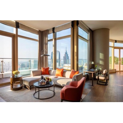 Designed by KCA, the Jumeirah Guangzhou is located in the heart of the CBD, offering modern and elegant accommodations just steps from the financial center and GT Land Winter Plaza. The hotel features an indoor swimming pool, fitness center, and bar. Within walking distance are the Canton Tower, City Museum, City Library, City Garden, and a live theater. Jumeirah Guangzhou is a 5-minute walk from Metro Lines 3 and 5 and a 10-minute drive from Guangzhou East Railway Station, providing direct access to Hong Kong within two hours. Guangzhou Baiyun International Airport is a 50-minute drive away. Each room, located above the 50th floor, features intelligent lighting and curtain systems, high-speed internet and wired broadband, a built-in mirrored TV, premium bedding, and a variety of pillows. All rooms include a branded hairdryer, stereo system, coffee machine, and a minibar with select teas and cocktails. Spacious bathrooms feature natural bath products, a bathtub, and a separate shower. Four restaurants offer global cuisine with a timeless celebratory atmosphere created by themed music and lighting. Guests can enjoy stunning visuals and the chefs' imaginative creations.