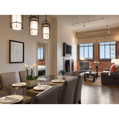Built high atop Ghirardelli Square with San Francisco Bay views, this urban San Francisco resort features luxurious apartments with free WiFi and fully equipped gourmet kitchens. Sweeping terraces with fire pits are featured on-site. All spacious apartments at The Fairmont Heritage Place Ghirardelli Square include a fireplace and a high-end entertainment system. All bedrooms are designed with an enclosed glass shower in the en suite bathroom. Exposed brick walls in all apartments offer natural soundproofing and a preserved element of the original Ghirardelli Square façade. An in-unit washer and dryer are tucked away in a closet for guest use. Select apartments feature bay views. Grocery shopping and chef services can be arranged before guests’ arrive or during their stay through the 24-hour concierge and butler. Room service from Palette, San Francisco Brewing Company, and McCormick & Kuleto's Seafood Restaurant is offered daily. The Fairmont Heritage elevators open directly to Ghirardelli Ice Cream and Chocolate Shop, local San Francisco boutiques and restaurants on Ghirardelli Square. All elevators and entrances are accessed securely by only guest key card access. San Francisco Maritime National Museum and Fisherman’s Wharf is 2 minutes’ walk away. Located at the foot of Golden Gate Bridge, the dog-friendly Crissy Field is 15 minutes’ bike ride away from The Fairmont Heritage Place Ghirardelli Square.
