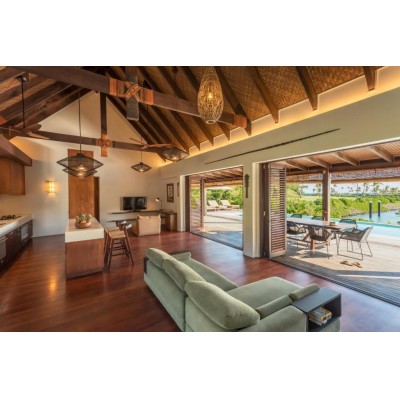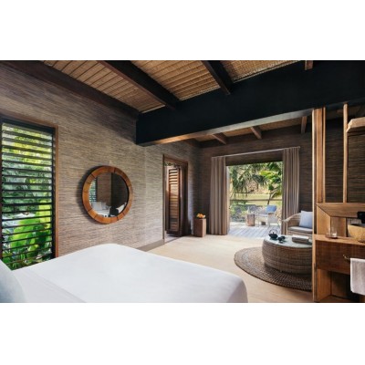 Six Senses Fiji features a restaurant, free bikes, a fitness centre and bar in Malolo. The accommodation features a private beach area, as well as a shared lounge and a garden. The accommodation offers a 24-hour front desk, room service and currency exchange for guests.
