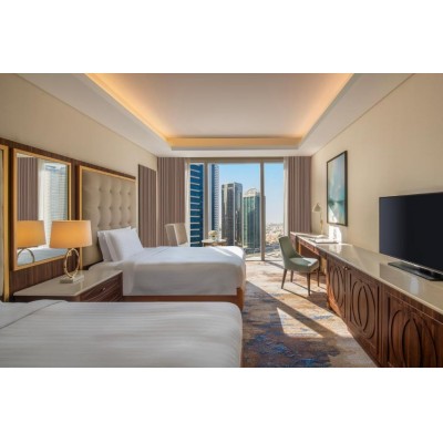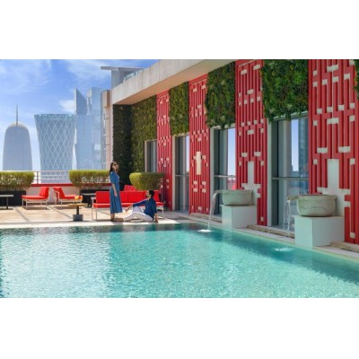 Set within a 5-mins walk from Doha City Centre and 2.1 km from the Doha Exhibition and Convention Center, Dusit Doha Hotel is set within the Diplomatic area in West Bay, Doha.  The property features a temperature controlled rooftop swimming pool. Dusit Doha Hotel offers air-conditioned rooms, suites and apartments. Every guest room boasts floor-to-ceiling windows, a work desk, flat-screen TV and large bathroom. The property boasts 5 dining options, a fully-equipped gym and spa with separate male and female treatment rooms. Other facilities include conference rooms and a grand ballroom. Hamad International Airport is 20.8 km from Dusit Doha Hotel.