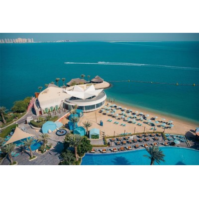 Located on the waterfront promenade Corniche, this 5-star hotel offers air-conditioned rooms with views of the Doha Bay. It has a private beach and eforea spa with an outdoor pool.
