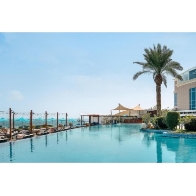 A flat-screen TV, minibar, and tea/coffee maker is in each of Hilton’s well-appointed rooms. Each comes with toiletries, a hairdryer, ironing facilities and a bathrobe. All rooms and suites feature Arabian Gulf views.