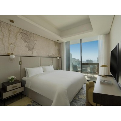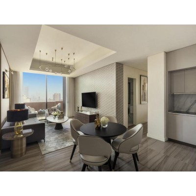 Elegant Accommodations: Fairmont Ramla Serviced Residences in Riyadh offers luxurious rooms with air-conditioning, balconies, and modern amenities. Guests enjoy free WiFi, private bathrooms, and garden or city views.Exceptional Facilities: The hotel features a rooftop swimming pool, sauna, fitness centre, and terrace. Additional amenities include a steam room, kids' club, and outdoor play areas.Dining Experience: A family-friendly restaurant serves American cuisine with halal and gluten-free options. Breakfast buffet, lunch, and dinner are available, complemented by a bar and coffee shop.Prime Location: Located 19 km from King Khalid International Airport, the hotel is near attractions such as Riyadh Park (8 km) and Al Faisaliah Tower (16 km). Guests appreciate the attentive staff and room cleanliness.