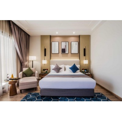 Comfortable Accommodations: Rooms feature air-conditioning, private bathrooms, balconies, and modern amenities including free WiFi, TV, and soundproofing. Guests enjoy city views, work desks, and comfortable seating areas.Exceptional Facilities: The hotel offers spa facilities, an indoor swimming pool, terrace, fitness room, and wellness packages. Additional services include a steam room, sauna, and kids' pool.Dining Experience: An international restaurant serves a buffet breakfast with halal options. The on-site coffee shop and bar provide additional dining options.Prime Location: Located in Riyadh, the hotel is 24 km from King Khalid International Airport. Nearby attractions include Al Nakheel Mall (7 km) and Al Wurud 2 (17 km).