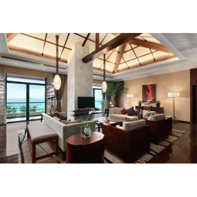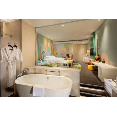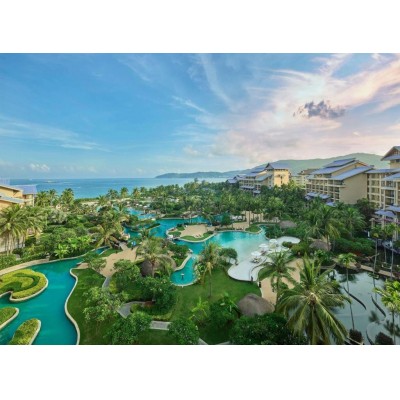 The Hilton Sanya Yalong Bay Resort & Spa is situated in the scenic Yalong Bay. Surrounded by lush tropical gardens and adjacent to a pristine white beach, the hotel boasts comprehensive facilities, including multiple outdoor swimming pools totaling approximately 3,800 square meters, a fitness center, a spa, and indoor and outdoor children's playgrounds covering approximately 1,500 square meters. There are also six restaurants and bars. The hotel is approximately a 30-minute drive from downtown Sanya and Sanya Phoenix International Airport. Flights from Hong Kong to Sanya take approximately 1.5 hours, while flights from Shanghai take approximately 3 hours. The hotel offers 492 rooms, suites, and villas. Rooms feature spacious balconies offering stunning sea views or views of the tropical gardens. The 6,780-square-meter spa experience center features eight spa villas, a fitness center equipped with brand-new fitness equipment, various massage services, a separate reception lobby and relaxation area, a steam room and sauna, a tea pavilion, and a beauty salon. The hotel offers family rooms and suites in Ocean World Blue and Fairy Tale Forest Green, equipped with dedicated children's bathrooms and play areas, allowing children to live in a magical animated space and explore boundless imaginations, providing families with children with an indoor and outdoor experience of family bliss! It incorporates innovative elements of Macau cartoons to create a "Barrel Kingdom" themed restaurant; the children's playground integrates indoor and outdoor leisure activity areas and other entertainment facilities. The entire park covers approximately 1,500 square meters, reflecting the characteristics of a seaside resort and incorporating a marine culture theme. It provides a fun and fully functional indoor playroom for children aged 3 to 12. A separate convention building offers complete meeting and banquet facilities, covering over 3,000 square meters in a two-story building. Both floors of the convention building connect to the outdoor lawn, suitable for hosting events. There is also approximately 3,000 square meters of beach lawn and approximately 300 square meters of sea lawn, ideal for outdoor activities and romantic weddings.