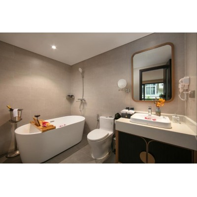 Le Premier Hotel & Rooftop Bar boasts a prime location in Hanoi, offering luxurious accommodations close to Hoan Kiem Lake and Trang Thanh Shopping Center. The property is near several popular attractions, less than 1 km from Hanoi Old Town Gate, 1.8 km from Hanoi Railway Station, and 2 km from the Imperial Fortress. The accommodation provides a 24-hour front desk, airport transfers, concierge services, and free WiFi. All rooms at this hotel are equipped with air conditioning, a seating area, a flat-screen TV with satellite channels, a safe, and a private bathroom with a bidet, free toiletries, and a hairdryer. Each room also has an electric kettle. Some rooms have a balcony, while others offer city views. All rooms at Le Premier Hotel & Rooftop Bar are equipped with bed linen and towels. The property offers a buffet, Asian, or vegetarian breakfast. The accommodation features a restaurant serving American, Chinese, and Korean cuisine, with vegetarian, vegan, and gluten-free options available upon request. Popular landmarks near Le Premier Hotel & Rooftop Bar include St. Joseph's Cathedral, Hanoi Opera House, and Thang Long Water Puppet Theatre. Noi Bai International Airport is 25 km from the property.