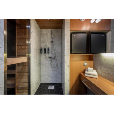 Helsinki. It offers free access to WiFi, gym, sauna and pool. There's also an à la carte restaurant and a private beach.
