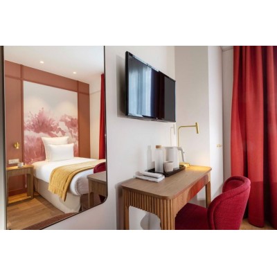 Perfectly located in the lively 9th arrondissement, between Montmartre, the Moulin Rouge and the Opéra Garnier, Hôtel Le Cardinal invite you to enjoy a truly immersive Parisian experience. Just a short walk from the Casino de Paris and Gare Saint-Lazare, our hotel offers direct metro access to the Champs-Élysées, the Sacré-Cœur Basilica, and the Stade de France. Recently renovated, the hotel combines modern comfort with authentic Parisian charm. Our stylish rooms, thoughtfully decorated, provide the perfect retreat after a day of exploring. Some feature a private terrace, ideal for soaking in the Parisian atmosphere. As part of our eco-responsible approach, minibars are available ONLY in Family and Triple rooms, helping us to limit our environmental impact. Whether you are visiting for a romantic getaway,a cultural escape, or a family holiday, Hôtel Le Cardinal welcomes you to its fully renovated spaces for a warm and memorable stay. Coming soon: our fitness room with Sauna will open at the end of October, adding an extra touch to your Parisian experience.
