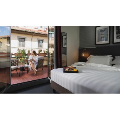 The 4-star iQ Hotel Firenze offers design interiors and i'Qortile Pizzeria & Cocktail Bar serving gourmet pizzas, appetizers and cocktails. It is located within a 10-minute walk from Florence Cathedral and Santa Maria Novella Station. Each room has free Wi-Fi access, an LCD TV, an marble bathroom. Buffet breakfast is available every morning, complete with cold cuts, cheese, fresh fruit, pastries and much more. I'Qortile Pizzeria & Cocktail Bar serves drinks, snacks and gourmet pizza on a patio. A fully equipped fitness area, an indoor boutique Spa, a seasonal outdoor plunge pool, bar and a fully equipped meeting room are also available. The property is 700 metres from the Accademia Gallery and a 20-minute walk from the Uffizi Gallery.