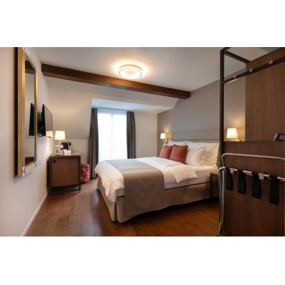 The 3-star Hotel DES ALPES is ideal for city travelers. It is located directly on the Reuss River in the picturesque, car-free old town of Lucerne right next to the world-famous Chapel Bridge. Sights, Culture and Congress Center Lucerne (KKL), train station and boat landing are within 3 minutes walking distance. Enjoy your stay in a room with a fantastic view of the lake, the Chapel Bridge and Mount Pilatus or with a view of the historic pedestrian zone of the Old Town. All rooms are well equipped, some have a balcony. Included in the overnight price is a value voucher of CHF 18.50, which you can use for any consumption in our restaurant directly on the Reuss river.