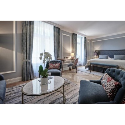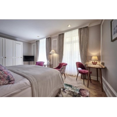 The Victoria Jungfrau Grand Hotel & Spa enjoys a picturesque location in Interlaken, nestled at the foot of the perpetually snow-capped Jungfrau mountain between two beautiful lakes. The unique 5,500-square-meter Victoria Jungfrau Spa features two swimming pools (indoor and outdoor), a sauna and steam room, and offers fitness, exercise, and wellness guidance. Additionally, the NESCENS Spa offers luxurious private spa rooms for couples and a cozy spa bar serving wellness spa cuisine. All rooms feature unique design and décor in elegant and contemporary styles. The elegant interiors and spacious marble bathrooms complement the design. Guests can enjoy views of the Jungfrau, the rooftop of Interlaken, or the nearby Harder Lookout. The Victoria-Jungfrau Grand Hotel & Spa boasts three restaurants. At La Terrasse Brasserie, a modern and relaxed atmosphere blends perfectly with authentic bistro cuisine. Italian food lovers can enjoy a variety of Italian specialties at Ristorante e Pizzeria Sapori, such as freshly baked stone-grilled pizzas and a selection of Italian wines. For guests looking to embark on a culinary journey, the hotel recommends Radius - By Stefan Beer, a Michelin-starred restaurant with 17 Gault Millau ratings, known for its unique and high-quality preparation of regional produce. You can have an unforgettable family holiday at the hotel's exciting kids' club, "Bienehuus." While you relax and enjoy your stay, a staff-supervised play area and fun activities will ensure your children have plenty of entertainment and relaxation. Well-trained staff provide a safe environment to look after your children, allowing you to enjoy some alone time. Victoria Jungfrau also offers a sun terrace overlooking the Jungfrau Massif and free Wi-Fi throughout the property.